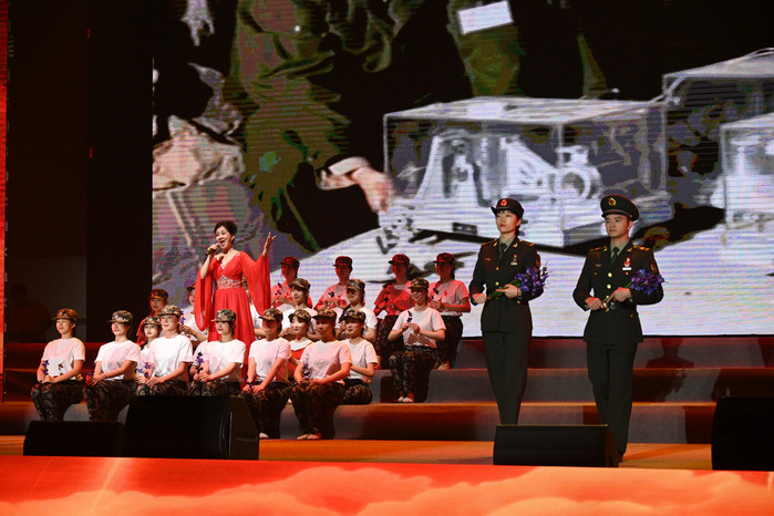 颁奖大会上,音乐学院师生参演《正青春·红之魂》《正青春·蓝之灵》《寄青春•七彩梦》等节目。《正青春·红之魂》节目中由王婷老师演唱歌曲《大漠深处》,通过舞蹈、朗诵、歌曲等多种艺术形式讲述福建籍院士林俊德将军隐姓埋名、扎根大漠、为国铸剑的光辉事迹,歌颂追求真理、潜心研究、勇攀高峰、甘为人梯的科学家精神。《正青春·蓝之灵》通过舞蹈、朗诵等艺术形式歌颂爱岗敬业、争创一流、艰苦奋斗、勇于创新、淡泊名利、甘于奉献的工匠精神。最后,《寄青春·七彩梦》展现了新时代大学生活力奋发的青春面貌,彰显了福建学子砥志研思、奋进勇为的青春精神,发出了强国有我、不负年华的青春呐喊。