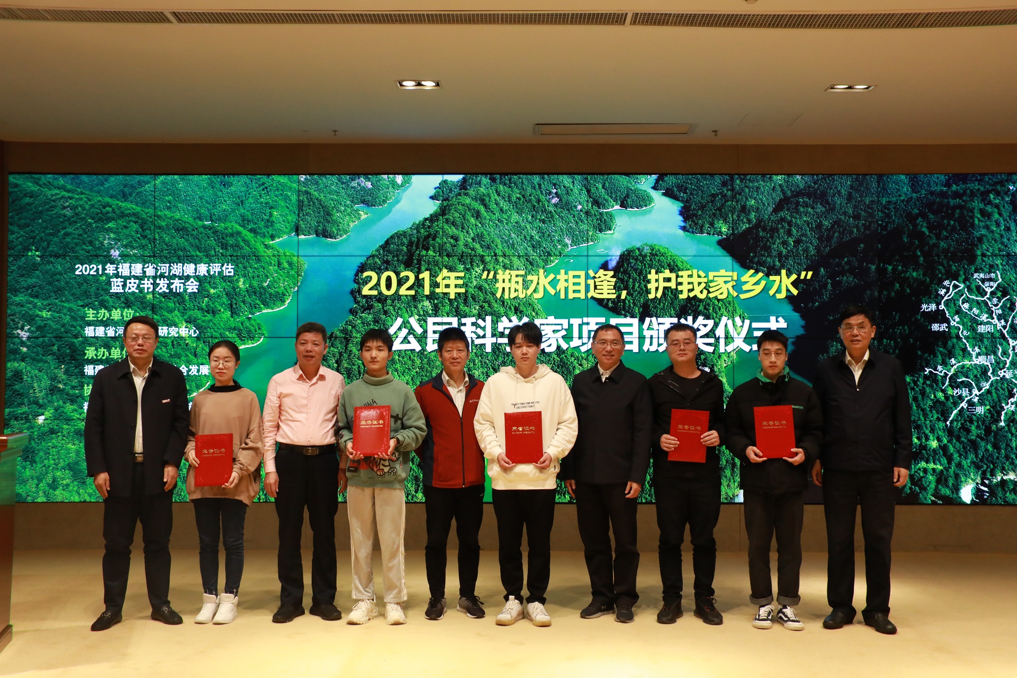 此次发布会还简要回顾了福建省河湖健康研究中心近三年持续开展的科学研究和实践工作,播放了“福建省河小禹和公民科学家参加河湖健康保护”的视频,并举行了2021年“瓶水相逢,护我家乡水”公民科学家项目的颁奖仪式。