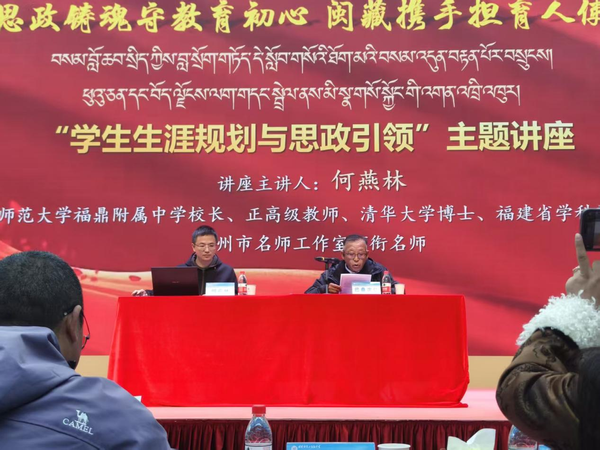 近日,我校附属中学校务委员、正高级教师何燕林在外派担任我校福鼎附属中学校长期间,应邀赴西藏林芝开展“大中小学思政课一体化建设”系列主题讲座。活动由林芝市教育局统筹组织。