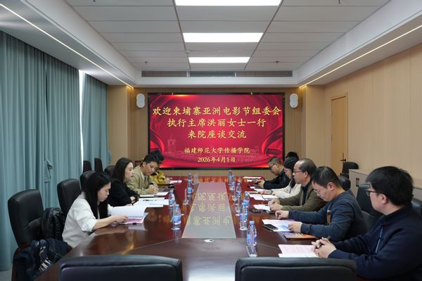 4月1日,柬埔寨亚洲电影节组委会执行主席洪丽女士一行到传播学院交流座谈。学院副院长吴青青,影视艺术系主任张经武、副主任章文哲,教师侯凯、高志丹、张亿参与座谈。