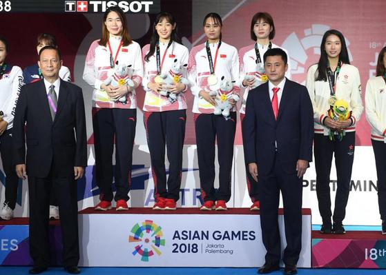 8月24日,2018年雅加达亚运会击剑比赛圆满落幕。体育科学学院2015级运动训练专业林声同学、2017级运动训练专业研究生施嘉洛同学分别参加女子重剑团体和男子花剑团体比赛,获得1金1铜的佳绩,为国家和学校赢得了荣誉。 (体育科学学院)