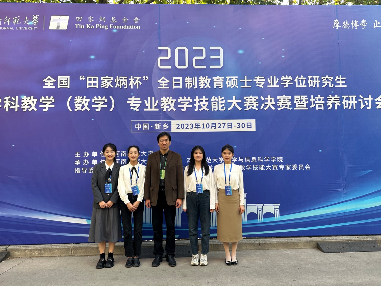 近日,2023年全国“田家炳杯”全日制教育硕士专业学位研究生学科教学(数学)专业教学技能大赛结果揭晓。我校数学与统计学院2022级研究生孙伟婧获二等奖,郑诗敏、付佳丽获三等奖,郑婉仪获优秀教学设计奖,肖民卿、陈林婕获评优秀指导教师。“田家炳杯”全日制教育硕士专业学位研究生教学技能大赛是目前国内层次最高、规模最大的教育硕士研究生教学技能竞赛,每年举办一次。本次大赛共有来自97所高校的236名选手进入决赛。(数学与统计学院)