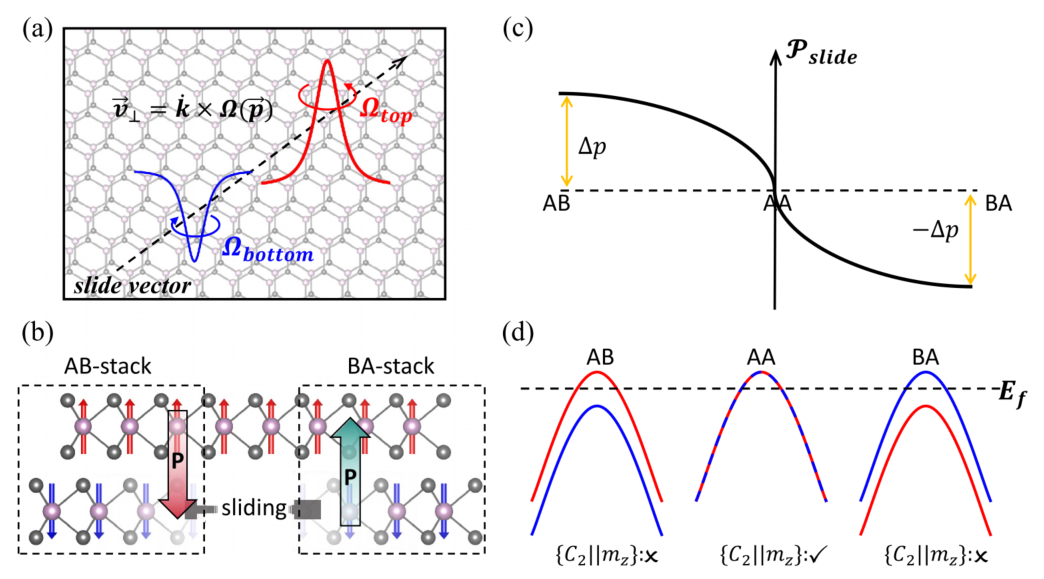 双层滑动铁电晶格中Berry曲率动力学的示意图