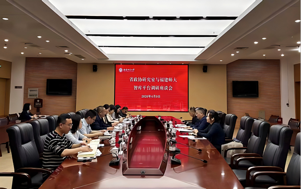 4月10日,省政协研究室宣传与社情民意信息处处长黄国林一行到校调研座谈。统战部、社会科学处,闽台区域研究中心、经济高质量发展研究中心、综合竞争力与国家发展战略研究院、两岸融合发展与国际传播研究智库、人口与发展研究中心等相关同志和智库平台专家参加座谈。