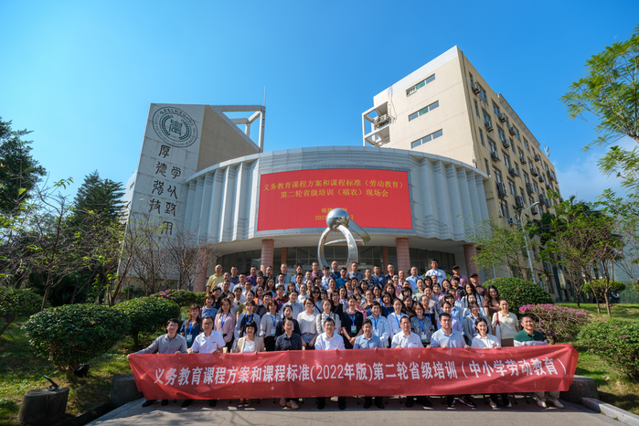 近日,由福建省教育厅主办,福建省普通教育教学研究室协办,我校教师教育学院承办的义务教育课程方案和课程标准(2022年版)第二轮省级培训(中小学劳动教育)在福州开班。全省各设区市(含平潭)中小学劳动教育骨干教师共100名学员参加了开班式。
