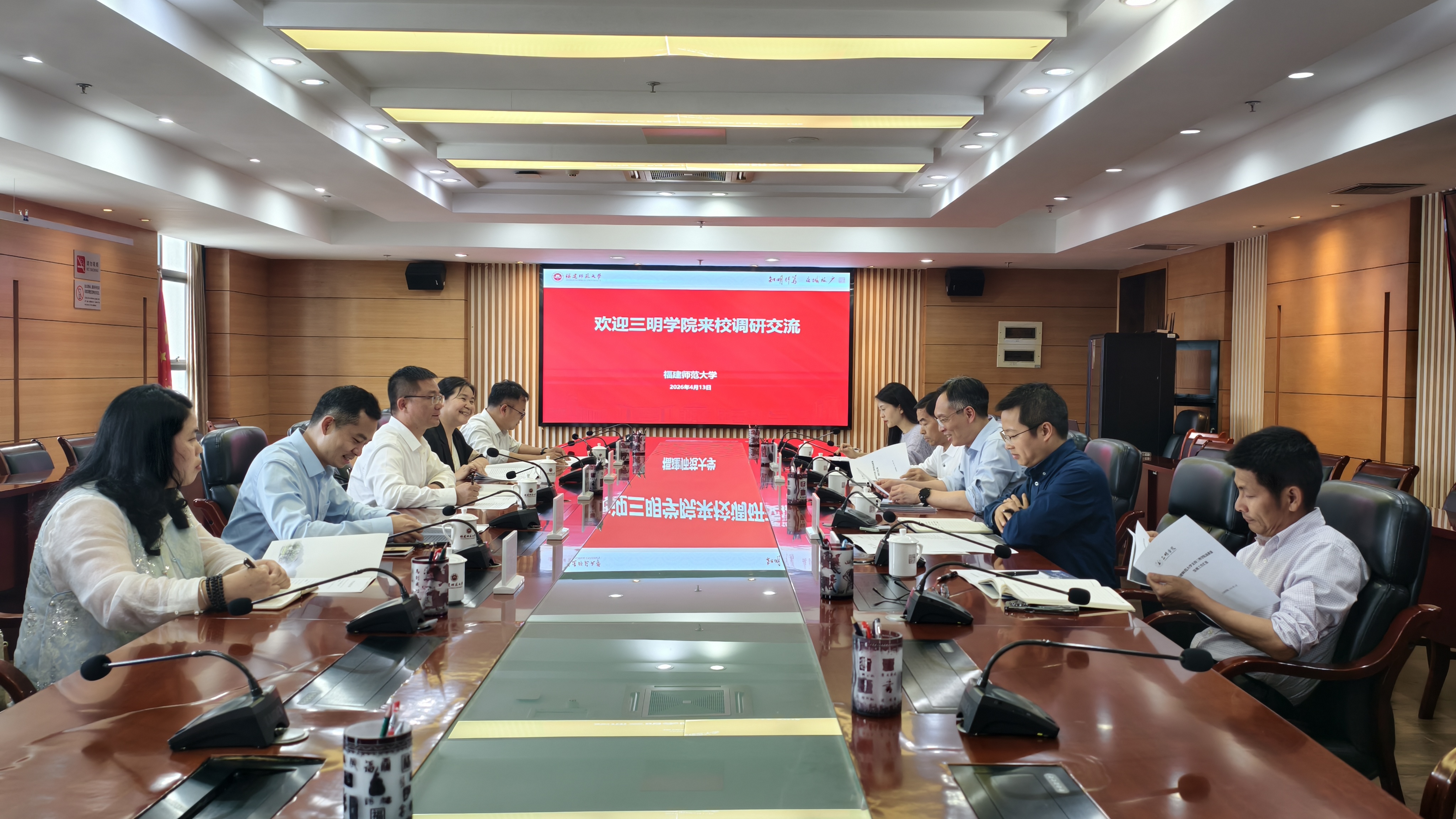 会上,陈日清对我校长期以来在学科建设、研究生联合培养等方面给予三明学院的帮助和支持表示感谢,并介绍了近年来三明学院在研究生培养、教师和干部队伍建设、硕士学位授予单位建设等方面取得的成效。陈晓斌指出,两校系出同源,情谊绵长,近年来不断扩展合作维度,完善长效联动机制,携手提升办学水平与核心竞争力,在专业共建、课程共研、人才共育、资源共享等方面取得扎实成效,为福建高等教育发展注入了强劲动力。双方表示,将以落实新一轮高质量发展合作框架协议为契机,紧抓国家战略机遇,进一步深化多领域务实合作,聚焦学科和学位点建设,共同促进高等教育提质增效,为区域经济社会高质量发展和教育强省建设贡献更大力量。