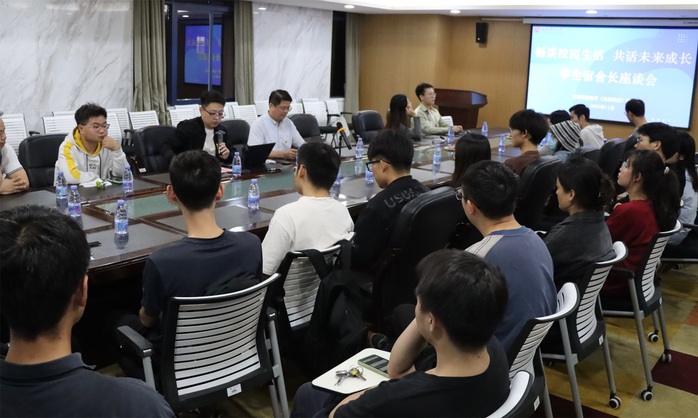 会上,全体参会人员共同观看宿舍消防安全微视频,进一步增加宿舍消防安全防范意识。随后,宿舍长围绕科研学习、团学活动、后勤服务等方面提出意见和诉求,与会老师与同学们深入谈心交流,对学生提出的“急难愁盼”问题一一记录和解答。