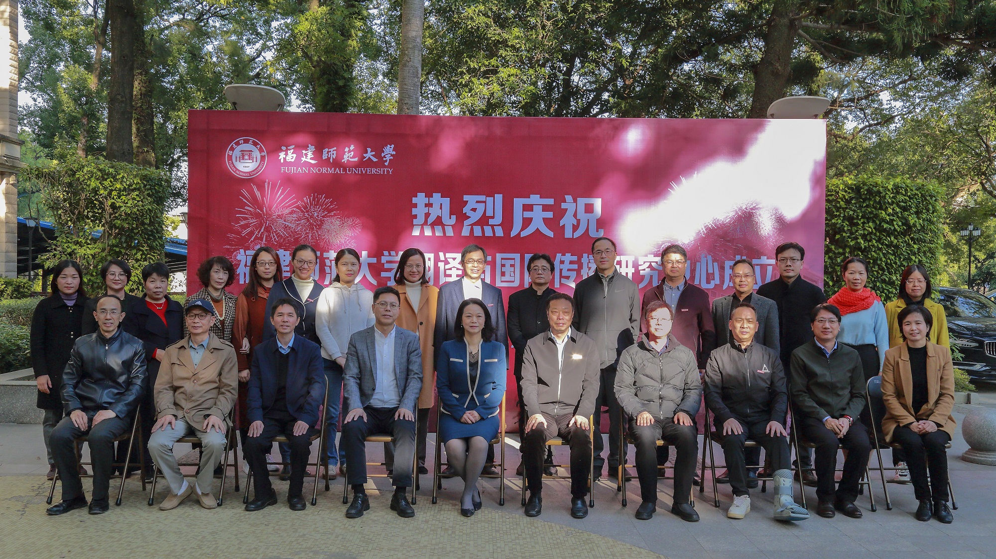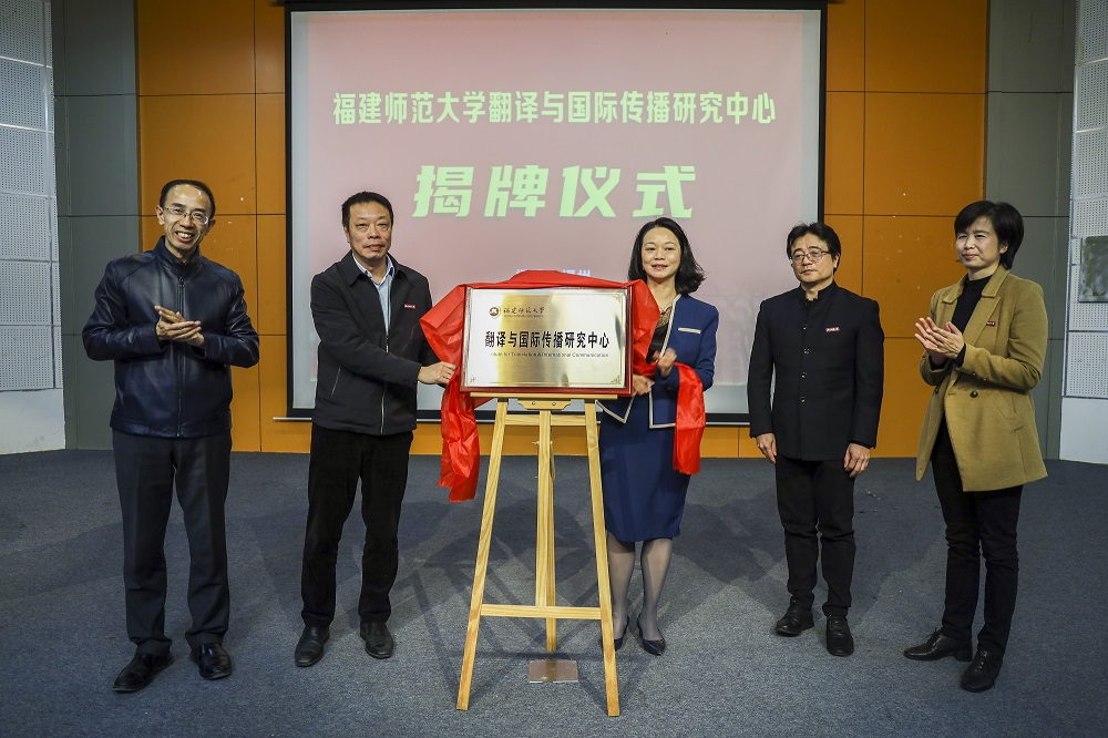11月24日,福建师范大学翻译与国际传播研究中心揭牌仪式暨“翻译、修辞与国际传播”学术研讨会,以线上线下同步进行方式在我校仓山校区举行。中国外文出版发行事业局当代中国与世界研究院党委书记杨平、省外事办公室副主任黄劭蓉,省外事办公室国际新闻与经济处处长王周雨、翻译室主任管意彪,我校党委副书记李绚,宣传部、社会科学处、国际合作与交流处、传播学院等单位负责人,外国语学院党政班子、师生代表出席揭牌仪式。北京大学出版社外文部主任张冰发来视频祝贺。上海外国语大学、河北师范大学、厦门大学、福州大学及我校外国语学院、传播学院、文学院等相关领域专家、教师、研究生逾百人参加了学术研讨。