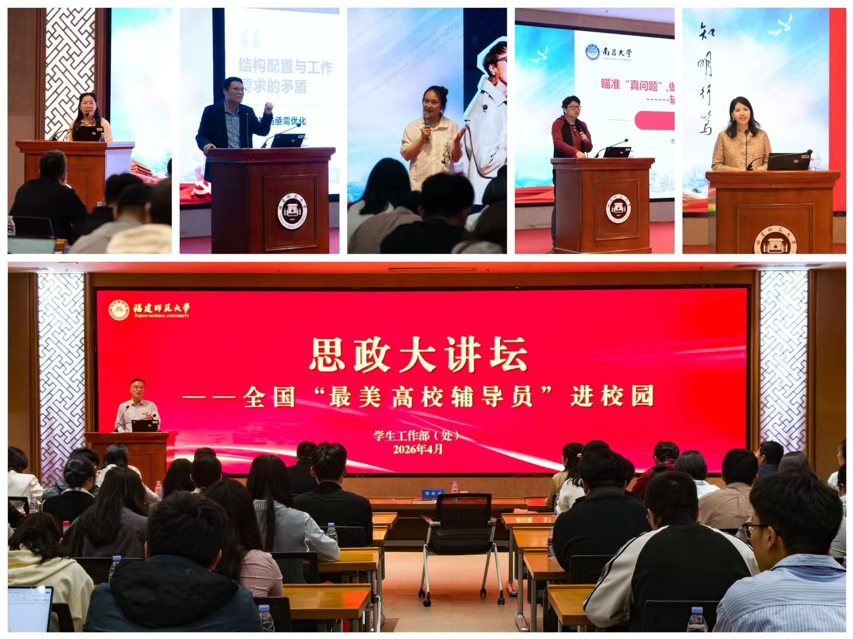 主题分享环节,南京大学李兴华、内蒙古大学莫伶、中南大学连选、南昌大学胡邦宁、东华大学魏冰等全国“最美高校辅导员”代表,结合自身思政一线工作实践,分别围绕谈心谈话、职业发展指导、思政工作创新、网络思政研究等内容作经验交流。专题研讨环节,喀什大学朱军、华中科技大学段政、东北师范大学张茂林、大连理工大学赵博、上海大学袁铭、赣南师范大学黄晖等思政专家,聚焦应急处置、危机干预、舆情应对等关键能力提升,与我校学生工作干部开展深入研讨。