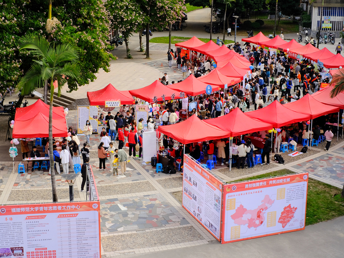 近日,由校团委主办的深入学习贯彻十九届六中全会精神暨第十四届志愿服务成果展在共青团广场举行,来自23个学院的志愿服务组织参与设展,约1600名师生到场观摩学习。