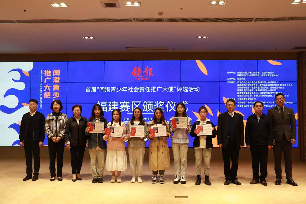 典礼上,对获奖学校和个人进行表彰。闽港两地共24位中小学生以及18位(组)大学生获评“社会责任推广大使”,12所中小学获评“优秀社会责任教育推广单位”。福建赛区颁奖典礼后还举办了“全民社会责任论坛”,福州市文儒书院院长孔海钦,第六届福建省人民政府顾问、我校公共管理学院教授郑碧强,福州华侨中学书记、校长刘燕以及武夷星茶业有限公司全球品牌事业总监江佳道参与论坛,围绕“闽港青少年社会责任教育经验”做主题分享。