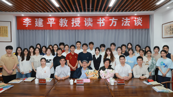 4月23日,校2026年度读书月暨第十九届读书节系列活动之“李建平教授读书方法谈”在李建平书屋举办。我校原校长、首批文科资深教授李建平,李建平书屋管委会主任、马克思主义学院綦正芳教授以及我校协和学院、马克思主义学院、经济学院、社会历史学院等30余名学生代表参与活动。