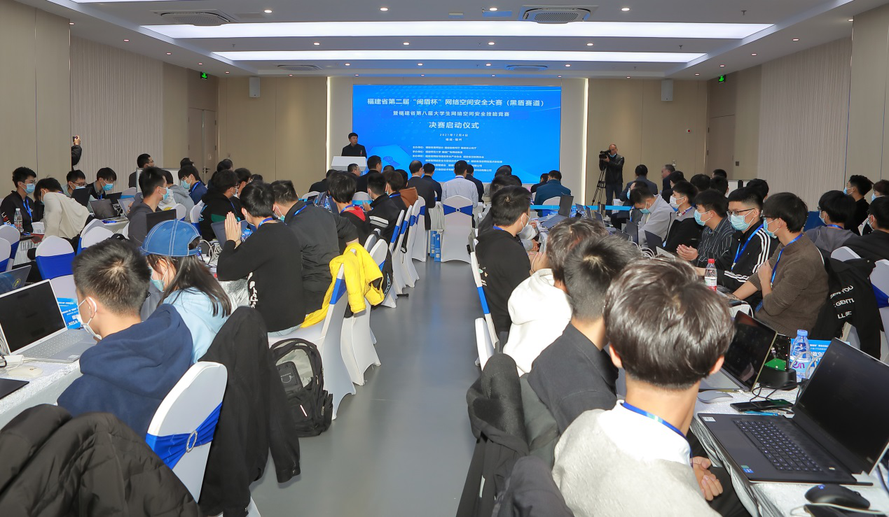 12月4日,由省委网信办、省教育厅、省公安厅联合主办,我校承办的福建省第二届“闽盾杯”网络空间安全大赛(黑盾赛道)暨福建省第八届大学生网络空间安全技能竞赛线下决赛在福州软件园成功举办。省委网信办副主任黄逸群、省通信管理局副局长白学任、省广电网络集团总工程师刘敏文、我校副校长郑家建等领导和有关单位代表出席了决赛启动仪式。