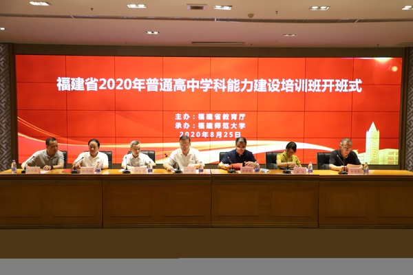 8月25日,由省教育厅主办、我校承办的2020年福建省普通高中学科能力建设培训班正式开班。开班式分线下与线上两个会场。省委教育工委委员,省教育厅党组成员、副厅长(正厅长级)刘健,省教育厅教师工作处处长许志勇、副处长崔彦,我校副校长郑家建,教育学部、马克思主义学院、社会历史学院、物理与能源学院、化学与材料学院、地理科学学院、生命科学学院的负责人和学员代表参加了在旗山校区宏达厅举行的线下开班式,来自省内各高校和设区市教育局选派的政治、历史、物理、化学、地理、生物等6个学科1600多名学员参加了线上开班式。