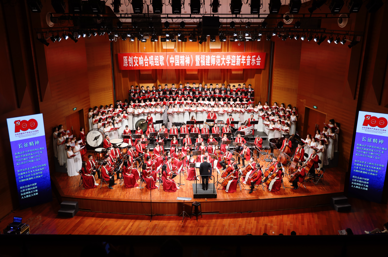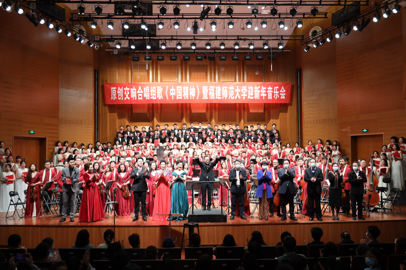 为传承中国精神、凝聚奋进力量,进一步推动党史学习教育走深走实,由中共福建省委宣传部、福建省文学艺术界联合会、福建省文化和旅游厅以及我校主办,中国音乐家协会指导,我校音乐学院、福建省歌舞剧院等承办的原创交响合唱组歌《中国精神》暨福建师范大学迎新年音乐会于12月10日晚在我校音乐厅举行。