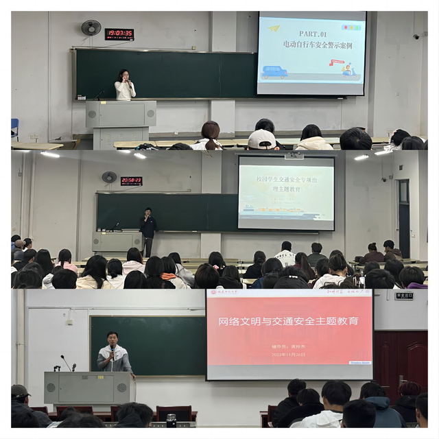11月26日晚,各年级辅导员通过周末集中教育,组织学生再次认真学习学校《校园道路交通管理规定》《校园电动自行车管理办法(试行)》《学生纪律处分规定(修订)》等规章制度,及时将《关于进一步加强校园交通管理的通知》等文件精神传达到每一名学生,并通过多个校园交通典型案例,教育引导学生提高政治站位,充分认识交通安全的重要性和必要性,理解、支持和配合相关工作,增强遵守校纪校规意识,并签订了交通安全承诺书。
