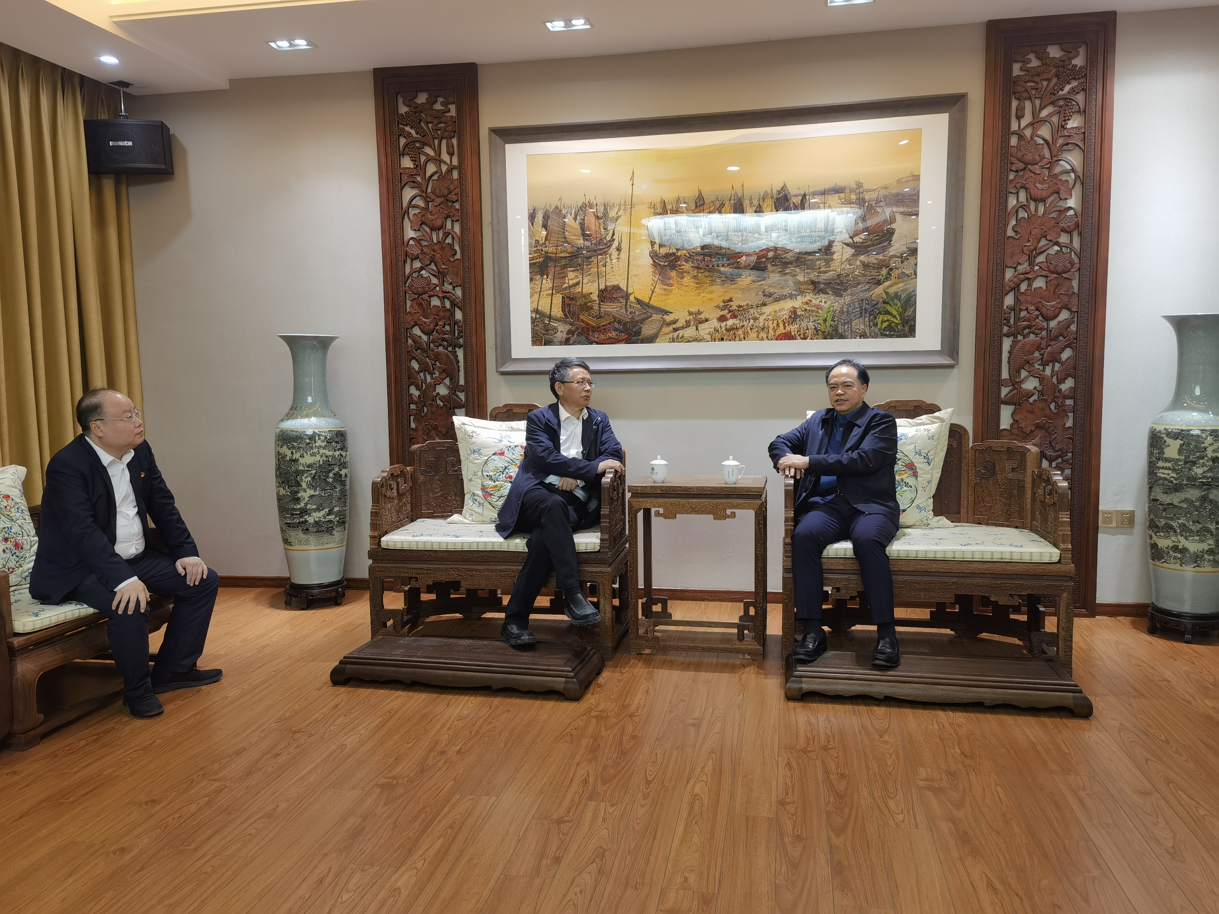 在泉港区,陈庆华一行走访了我校省科技特派员团队服务企业—要要股份有限公司,与泉港区副区长程刚进行了座谈,就推进校地第三轮合作协议签定有关事项进行了沟通交流。