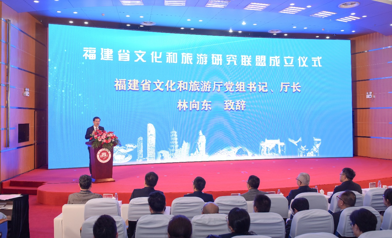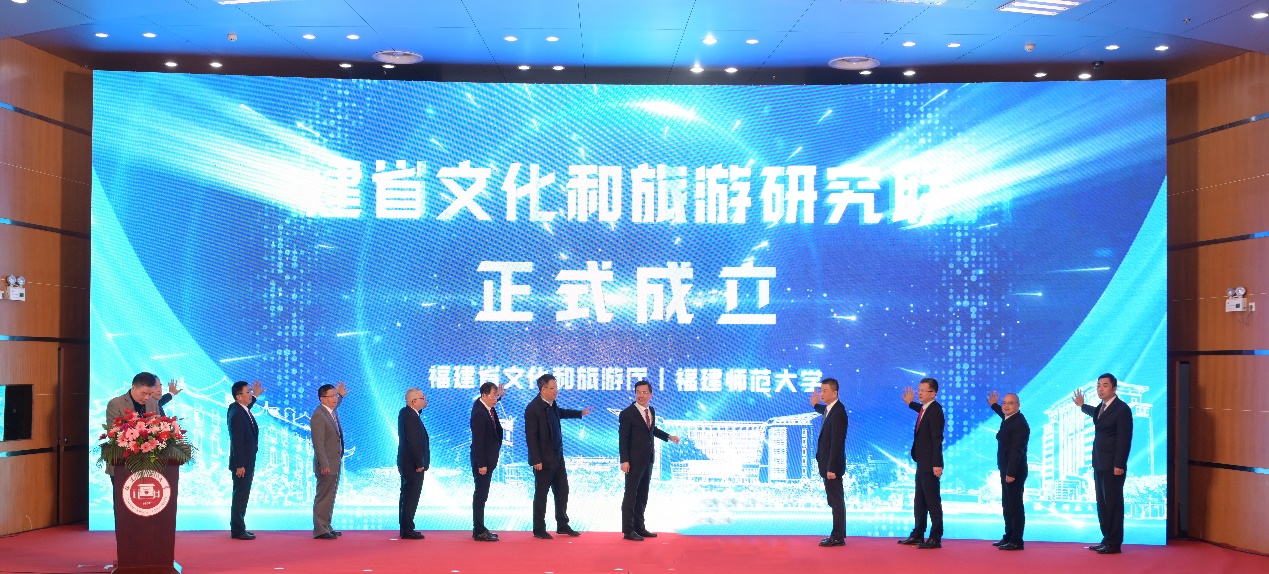 仪式于12月1日在我校旗山校区学术大讲堂举行,由福建省文旅厅指导、我校主办。福建省文旅厅党组书记、厅长林向东,我校党委书记潘玉腾,福建省文旅厅副厅长肖长培,我校副校长吴剑锋,福建省旅游发展集团总会计师余运庄,中国联通公司福建分公司副总经理张毅,福建理工大学副校长何仕,福建江夏学院副校长朱四海,莆田学院副校长黄鹏飞,武夷学院副校长廖斌,福建商学院副校长萧罡,福建职业艺术学院党委书记陈晟,以及福建省文旅厅有关处室负责同志,福建省文化和旅游研究联盟盟员单位相关负责同志,我校文化旅游与公共管理学院师生代表参加成立仪式。文旅部科教司原司长、全国旅游标准化技术委员会主任孙若风,安徽师范大学原党委常委、副校长陆林教授,安徽旅游智库副主任王朝辉教授通过视频方式发来祝贺;江苏省旅游学会会长、南京师范大学黄震方教授发来贺信。仪式由吴剑锋主持。