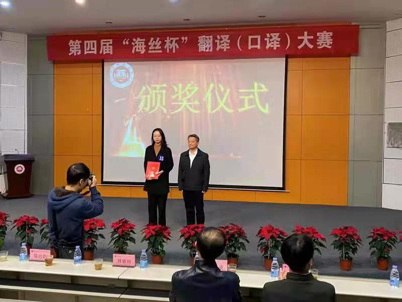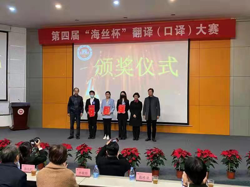近日,第四届“海丝杯”英语翻译(口译)大赛在我校成功举办,由福建省翻译协会主办、我校外国语学院承办,旨在繁荣福建省翻译事业,激发社会各界学习口译热情,发现和储备一批“海丝”核心区建设急需的高素质应用型口译人才。省政府外事办公室主任、省翻译协会会长陈出新,省翻译协会秘书长、省外事服务中心主任林敏榕,我校副校长陈庆华,以及外国语学院师生代表参加了活动。