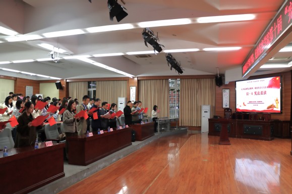 走进中小学“沉浸式”宣讲。12月4日,法学院、纪检监察学院联合福建省高级法院、我校附属中学、附属小学开展“弘扬宪法精神,建设法治校园”宪法宣传周主题活动。同时,各班级团支部走进福州市小柳小学、钱塘小学、铜盘中学,让学生在欢声笑语中得到“润物无声”式的教育,让宪法精神真正入脑入心。