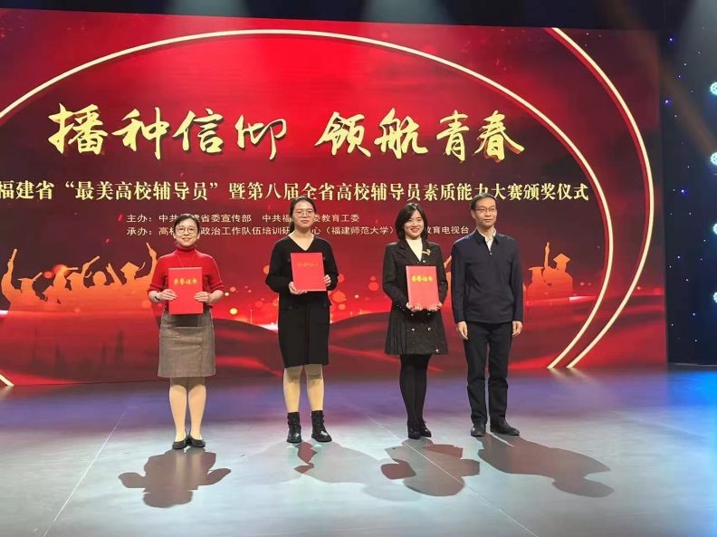颁奖仪式以“播种信仰 领航青春”为主题,通过人物短片展示与获奖者发言,充分展现了“最美高校辅导员”的优秀事迹,展现了我省高校辅导员的精神风貌和担当作为。经过严格的程序,在学校推荐、专家评审的基础上,评选出20位高校辅导员,授予福建省“最美高校辅导员”和“最美高校辅导员提名人物”称号。我校文学院团委书记张晓岚获评“最美高校辅导员”,旅游学院团委书记李文祥获评“最美高校辅导员提名人物”。