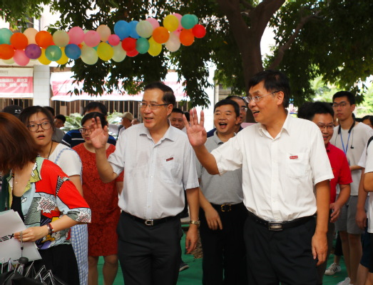9月15日,是我校2018级新生报到的日子。当天,来自五湖四海的万名新生齐聚仓旗校园,为百年师大注入了新的生机与活力。校领导李宝银、王长平、叶燊、郑家建、涂荣带领有关部门负责人,先后走访了旗山、仓山校区各迎新点、新生报到点,检查迎新工作情况、“绿色通道”服务情况,看望新生、家长、工作人员和学生志愿者。走访过程中,校领导们对各学院充分发挥专业优势,开展各具特色、别具一格的迎新做法给予了充分肯定,并代表学校感谢广大师生为做好迎新工作付出的辛勤努力。在各迎新点,校领导们与新生及家长亲切交谈,对新同学的到来表示热烈欢迎,向大家简要介绍了学校的基本情况,并勉励同学们不负韶华、珍惜时光,科学规划、合理安排大学生活,在有限的时间内学好知识、打好基础,勇做担当民族复兴的时代新人。