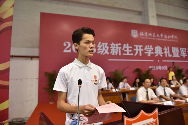 典礼于9月16日上午在旗山校区室内田径场隆重举行。校长王长平,学校有关职能部门负责人和学院党政负责人,以及协和学院内各单位负责人,2018级辅导员和3374名新生参加了典礼。