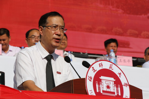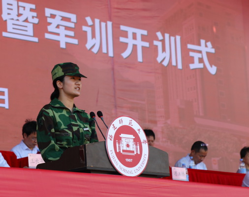 校长王长平代表全校师生员工对新同学的到来表示热烈欢迎,并从办学历史、师资队伍、人才培养等方面介绍师大之美,希望同学们从师大之美中汲取力量,成就大写青春。一要有励志奋斗的“大格局”。作为新时代的大学生,要树立远大的理想,打破“小确幸”,理解“大时代”,在不断的学习、思考中培养宽广格局,在持续的奋斗、拼搏中放飞青春梦想。二要有求真务实的“大作为”。要倍加珍惜在校学习的美好时光,不挥霍青春,追求真知,潜心问学,学到真本领、增长真才干,让青春在求真务实中绽放光彩。三要有知行合一的“大追求”。要做个行动派,以知促行、以行求知,使自己德智体美劳全面发展,让青春在知行合一中砥砺成长。最后,他希望同学们以钢的意志、以铁的纪律,坚决听从指挥,严格要求自己,在刻苦训练中感悟家国情怀、凝聚强军意志、增强血性担当,圆满完成军训任务。