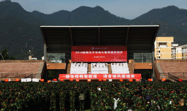9月17日上午,我校2018级本科新生开学典礼暨军训开训式在旗山校区和仓山校区隆重举行。校领导王长平、潘玉腾、叶燊、黄清波、赖海榕,全体参训教官,机关有关部门负责人、各学院党政负责人,各学院教学秘书、辅导员和2018级全体本科生参加了典礼。典礼由校党委副书记叶燊主持。