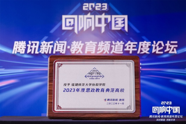 日前,2023年“回响中国”腾讯新闻·教育频道年度高峰论坛在北京举行,众多教育政策制定者、专家学者及教育从业者共聚一堂,探讨教育领域新发展和新趋势。会上,福建师范大学协和学院荣膺“2023年度思政教育典范高校”。
