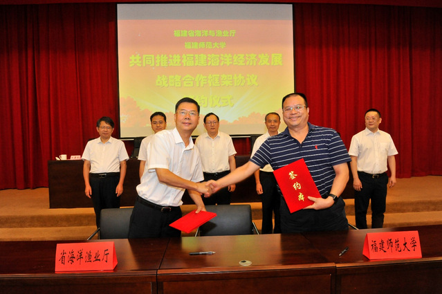 战略合作框架协议的正式签约,表示双方今后将共同打造“福建海洋高新产业科技创新平台”,共建6•18海洋协同创新院、福建师范大学“南方海洋研究院”和“福建省海洋经济研究中心”,协同构建探索仪器、人才和信息资源共享机制,并开展海洋经济分析与评估、滨海旅游、“海丝”文化、闽台合作等多方面的研究与合作,助推我省海洋经济持续健康发展。
