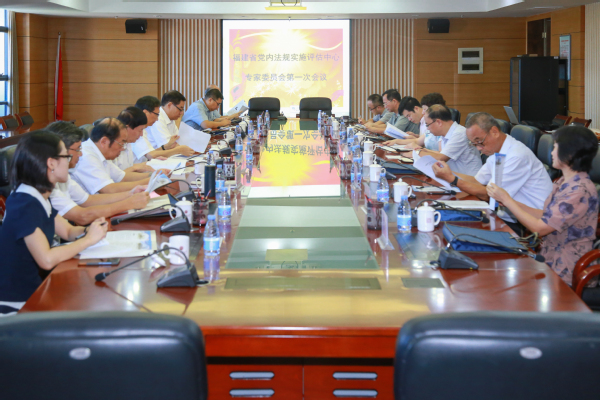 会议于2018年9月20日上午在旗山校区第二会议室召开。福建省委办公厅巡视员、省委党建办主任赵彬,主任委员、中国社科院法学研究所原所长、学部委员李林研究员,副主任委员、我校马克思主义学院郑传芳教授,副主任委员、厦门大学法学院朱福惠教授,委员、福建省委党校原副校长游龙波教授,委员、山东大学马克思主义学院院长王韶兴教授,委员、武汉大学法学院副院长、武汉大学党内法规研究中心执行主任祝捷教授,委员、福建省委党校法学部主任邢亮教授,福建省委办公厅法规局主任科员林静,我校纪委书记、评估中心主任黄清波,法学院、公共管理学院负责人及评估中心有关教师代表出席了会议。