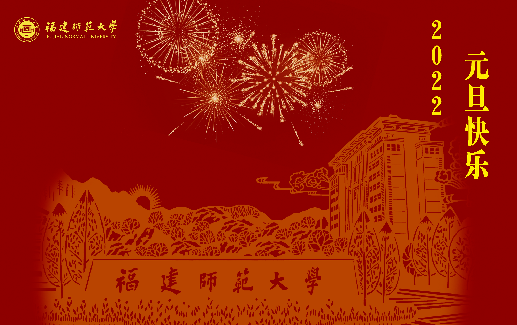 日月春晖渐,光华万物新。在这辞旧迎新的美好时刻,谨向全校师生员工、离退休老同志、海内外校友和所有关心支持福建师范大学建设发展的各级领导、各界朋友,致以新年的美好祝福!