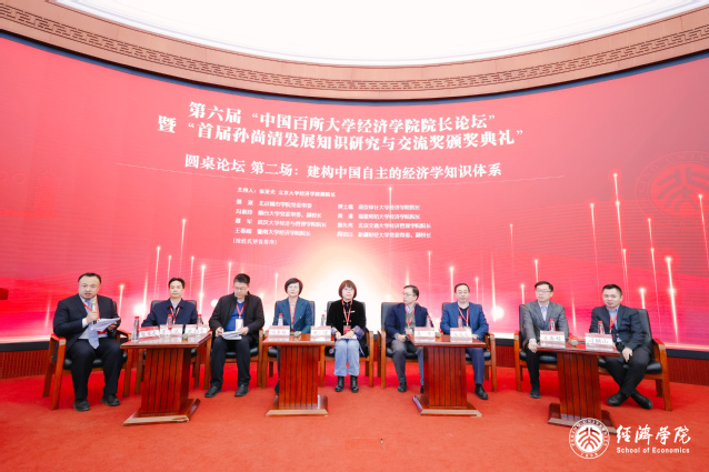 本届论坛主题为“加快建构中国自主的经济学知识体系”,由开幕式、首届孙尚清发展知识研究与交流奖颁奖典礼、主旨演讲、圆桌论坛、中国百所经院人才招聘会和平行分论坛等环节组成。在“建构中国自主的经济学知识体系”圆桌论坛上,我校经济学院院长黄瑾与北京城市学院党委常委蔡派,南京审计大学经济学院院长樊士德,烟台大学党委常委、副校长冯素玲,武汉大学经济与管理学院院长聂军,北京交通大学经济管理学院院长施先亮,暨南大学经济学院院长王春超,新疆财经大学党委常委、副校长周铭山等嘉宾展开了交流和讨论。