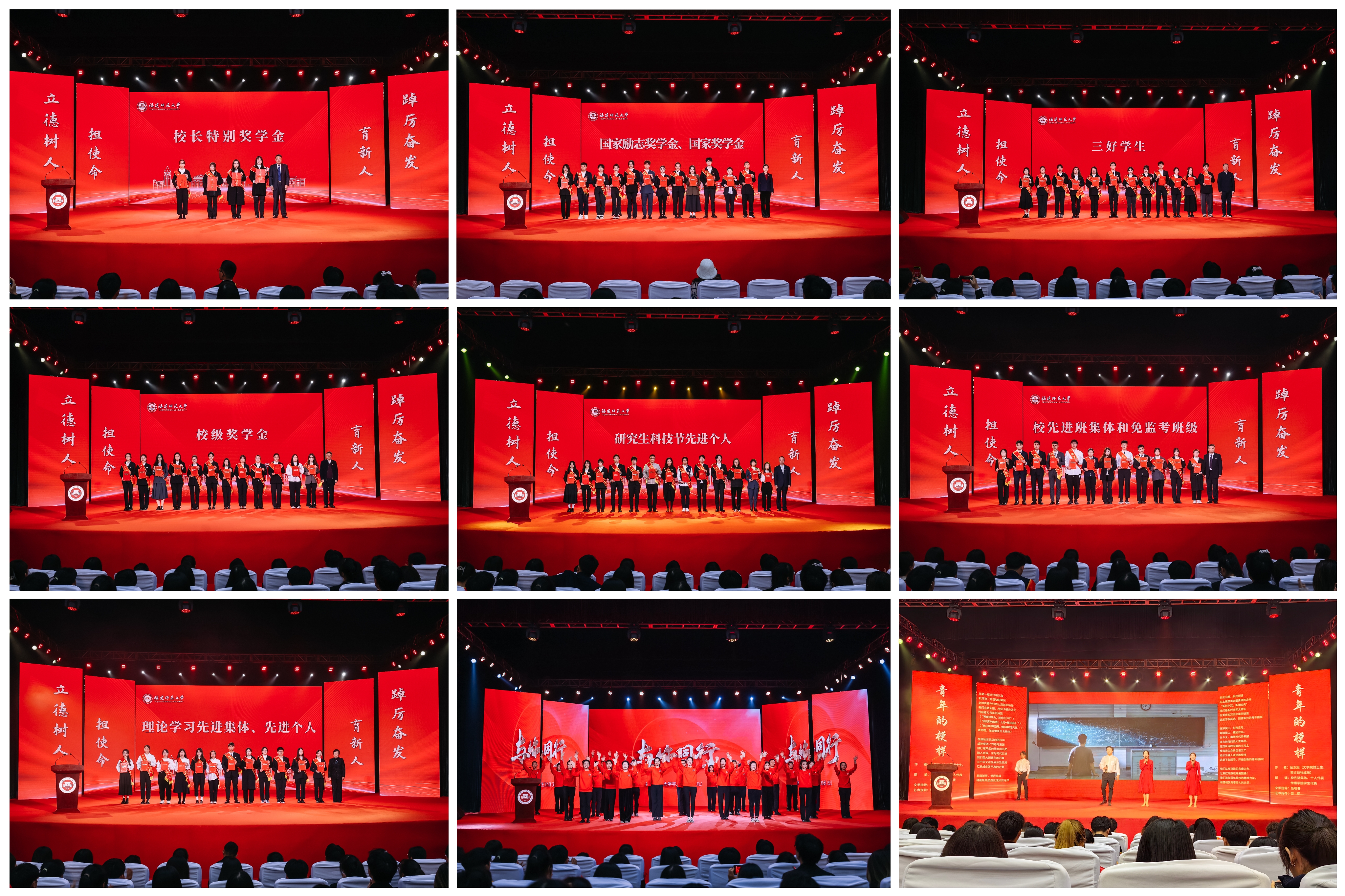大会表彰了学校2022-2023学年各级各类先进集体和先进个人,包括4位校长特别奖学金、172位国家奖学金获得者、661位国家励志奖学金、3232位校研究生学业奖学金、6325位校优秀学生奖学金获得者;33位校学生党员标兵、35位校学生党务工作标兵、74位校三好学生标兵、1419位校三好学生、1750位校优秀学生干部;85个校先进班集体、272个免监考班级、10个研究生科学道德与学风建设优秀组织奖、3个研究生科技节优秀组织奖、26个“大学生自主学习马克思主义理论”先进集体、11个优秀学院易班工作站;44位研究生科技节单项奖、193位研究生学术先进个人、118位“大学生自主学习马克思主义理论”先进个人、30位校优秀易班学生干部。