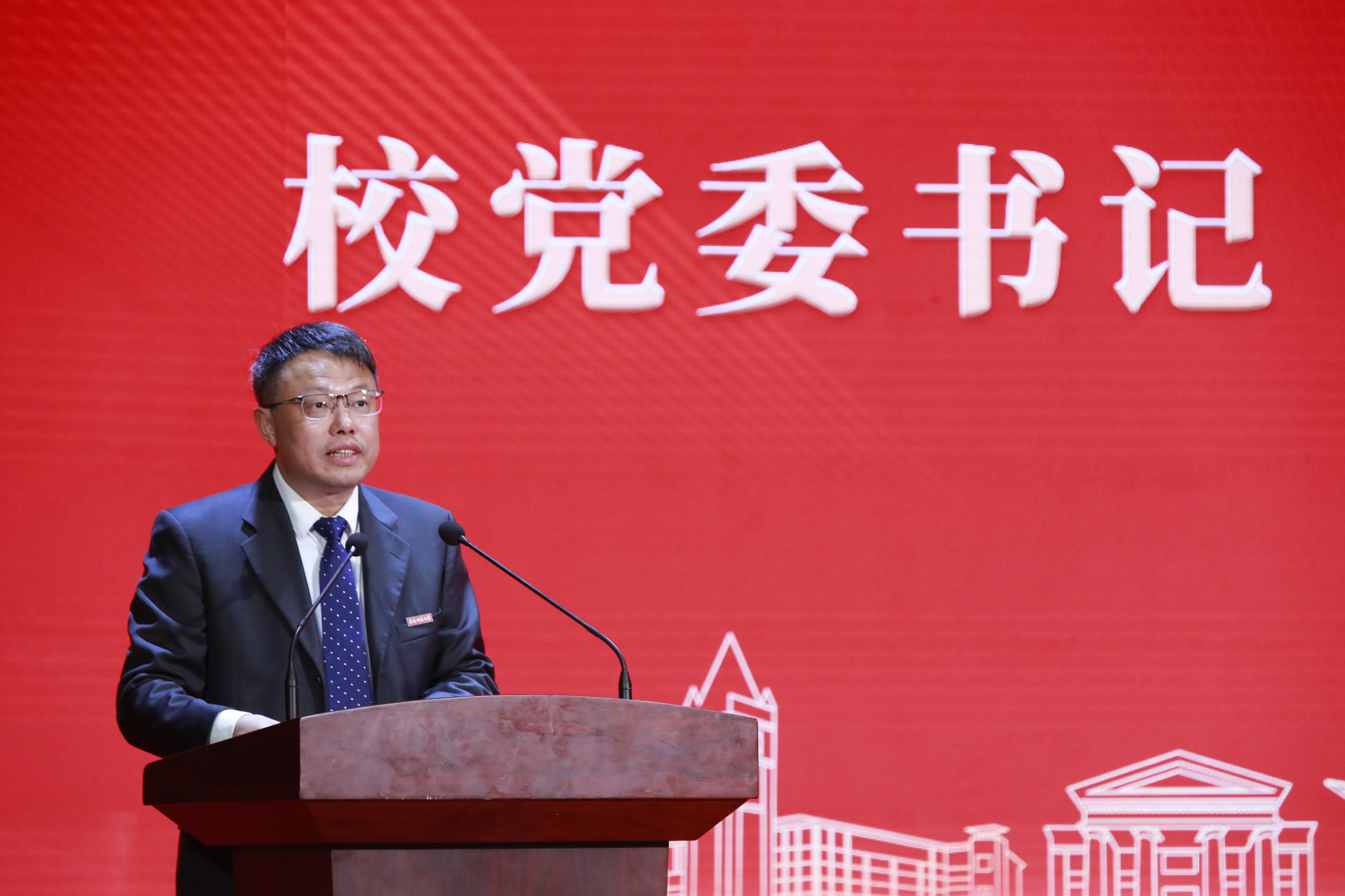 校党委书记潘玉腾代表学校向受到表彰的先进集体和先进个人表示祝贺,并向潜心教书育人的广大教职工表示感谢。他充分肯定了一年来广大同学在思想政治、专业学习、科研创新、素质拓展等方面所取得的优异成绩,鼓励同学们以先进集体和个人为榜样,踔厉奋发、勇毅前行,努力成长为堪当民族复兴重任的时代新人。一要高扬理想之帆,坚定信念跟党走,锐意进取、奋力拼搏,把个人的理想追求融入国家和民族的事业中;二要敢担复兴之责,勇为人先挑重担,自觉加强思想淬炼、政治历练、实践锻炼、专业训练,在挺膺担当中成就精彩人生;三要能吃非常之苦,不畏艰难显勇毅,自找求知之苦、自找实干之苦,为青春远航、人生搏击蓄积能量;四要肯下奋斗之功,砥砺前行促成长,用奋斗擦亮青春底色,以实干担当时代重任,让青春在全面建设社会主义现代化国家的火热实践中绽放绚丽之花。