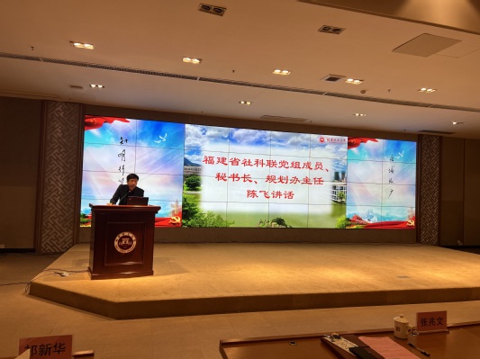 会议于1月17日在旗山校区行政楼宏达厅召开。福建省社科联党组成员、秘书长、社科规划办主任陈飞,社科规划办副主任肖孟刚,厦门大学社会科学研究处处长高和荣,我校副校长郑家建,文科学院(学部)分管科研工作负责人、科研秘书,拟申报2022年度国家社科基金项目的教师,社会科学处全体工作人员等参加了会议。