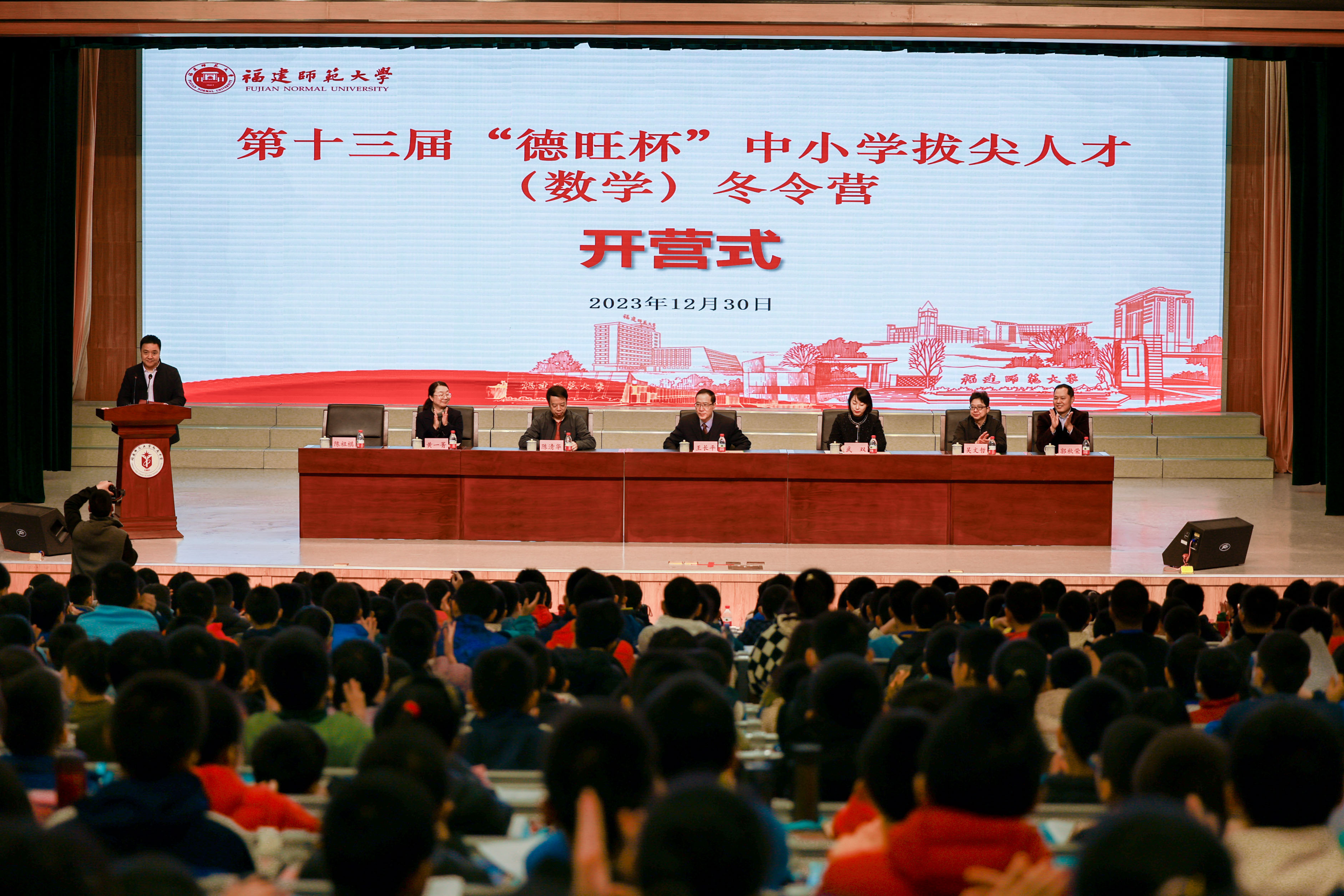 12月30日,我校第十三届“德旺杯”中小学拔尖人才(数学)冬令营在我校附属中学开营。河仁慈善基金会理事长武双,校长王长平,教师教育学院、附属中学、福建数学基础教育研究中心负责人参加了开营式。