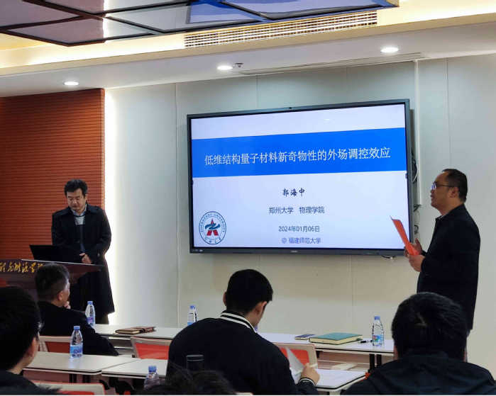 1月6日-7日,物理与能源学院举办科士达学术大讲堂第一期学术报告会,邀请国家杰出青年科学基金获得者、山东师范大学副校长蔡阳健教授,物理系2001届校友、国家杰出青年科学基金获得者、精密光谱科学与技术国家重点实验室副主任、华东师范大学张诗按教授,河南省特聘教授、郑州大学物理学院郭海中教授在旗山校区科士达学术大讲堂为全院师生开讲。讲座由副院长(主持工作)林应斌教授主持,物理学科带头人黄志高教授、学院学术委员会主任林秀敏教授、学院院务委员陈大钦教授等师生近100人到场聆听。