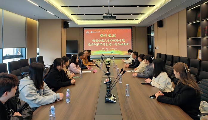 近日,外国语学院党委副书记肖良建带领辅导员、10名2024届毕业生,赴德艺文化创意集团股份有限公司开展实地考察和就业推荐工作,并与公司领导陈云、欧阳军及人事部门负责人座谈交流。