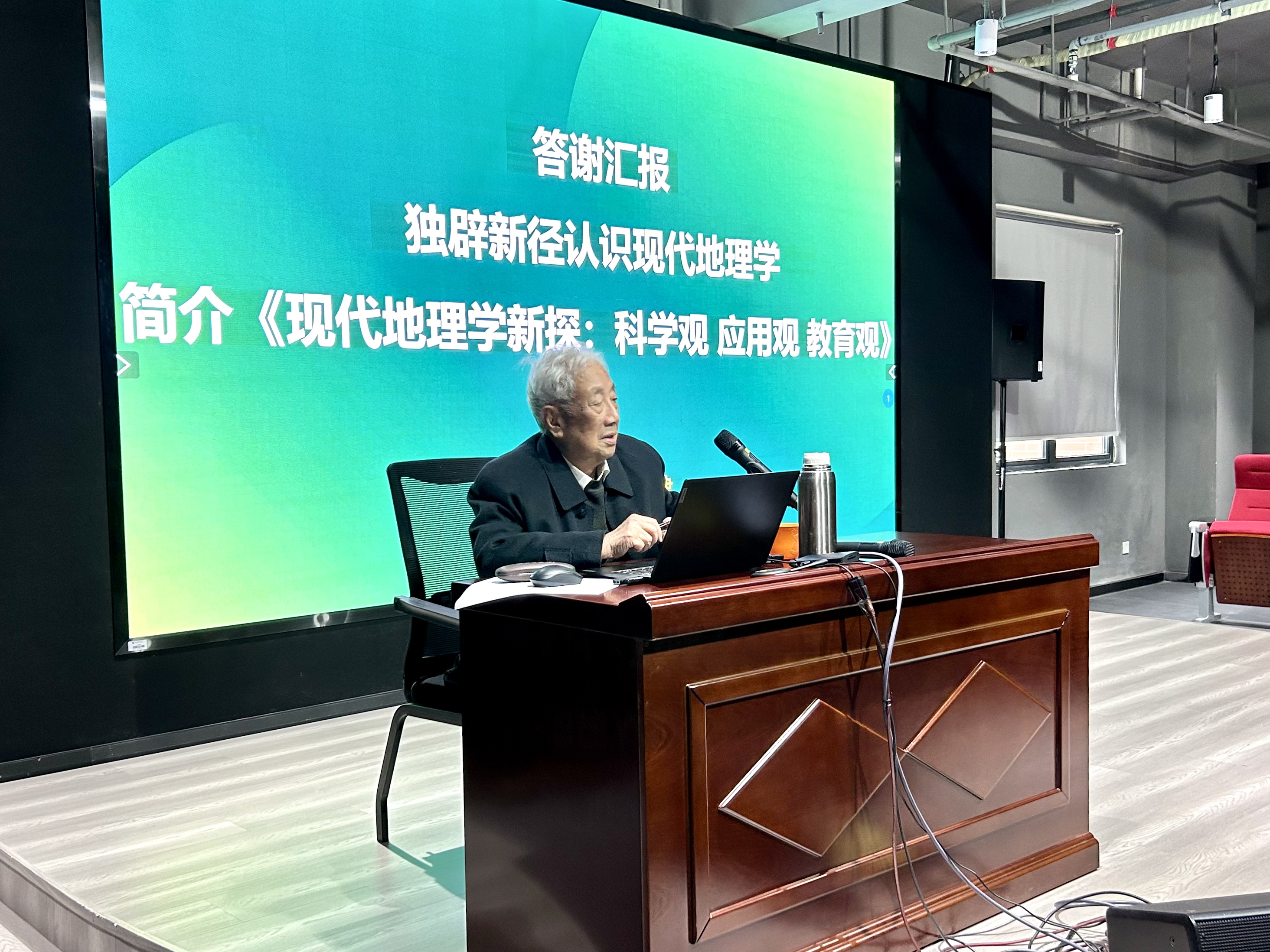 报告结束后,朱鹤健教授与现场师生交流,答疑解惑。虽已高龄,但他探索现代地理学的热情丝毫不减,深深打动了在场师生。朱鹤健教授还勉励大家要继续保持“地理心”、怀有“地理梦”,为让现代地理学得到新发展、成为解决国计民生问题的利器而迸发出新的活力。
