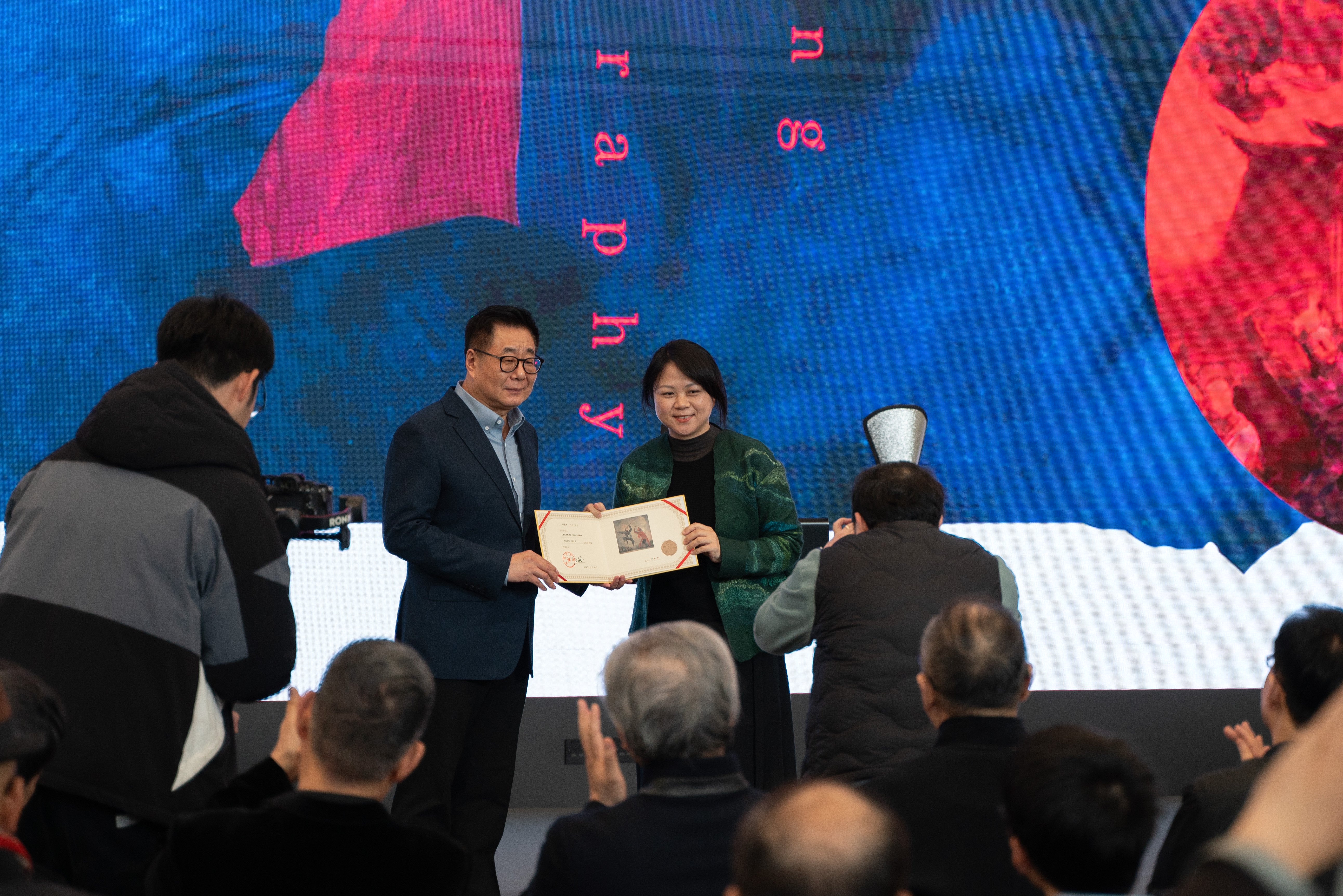 作品展于1月25日在深圳美术馆开幕,由中国民间文艺家协会、福建省文学艺术界联合会、福建师范大学、福建省美术馆、深圳美术馆联合主办。中国美术家协会主席范迪安,中国美术家协会副主席、四川美术学院院长庞茂琨通过视频致辞;全国台湾研究会第七届理事会会长汪毅夫,中国文联副主席许江也发来贺词。中国美术家协会副主席徐里,中国民间文艺家协会副主席、中国工艺美术学会副理事长杭间,广东省美术家协会副主席、广州美术学院院长范勃,福建省文联副主席、书记处书记、福建省美术家协会主席王来文,我校党委副书记陈晓红出席开幕式并致辞。何香凝美术馆馆长蔡显良,中央美术学院副院长邱志杰,鲁迅美术学院副院长李书春,中国画学会副会长、深圳市文联名誉主席董小明,中国美术学院资深教授、中国美术学院原副院长宋建明以及两岸三地艺术家、我校深圳校友会校友代表、媒体代表等共计300余人莅临现场。