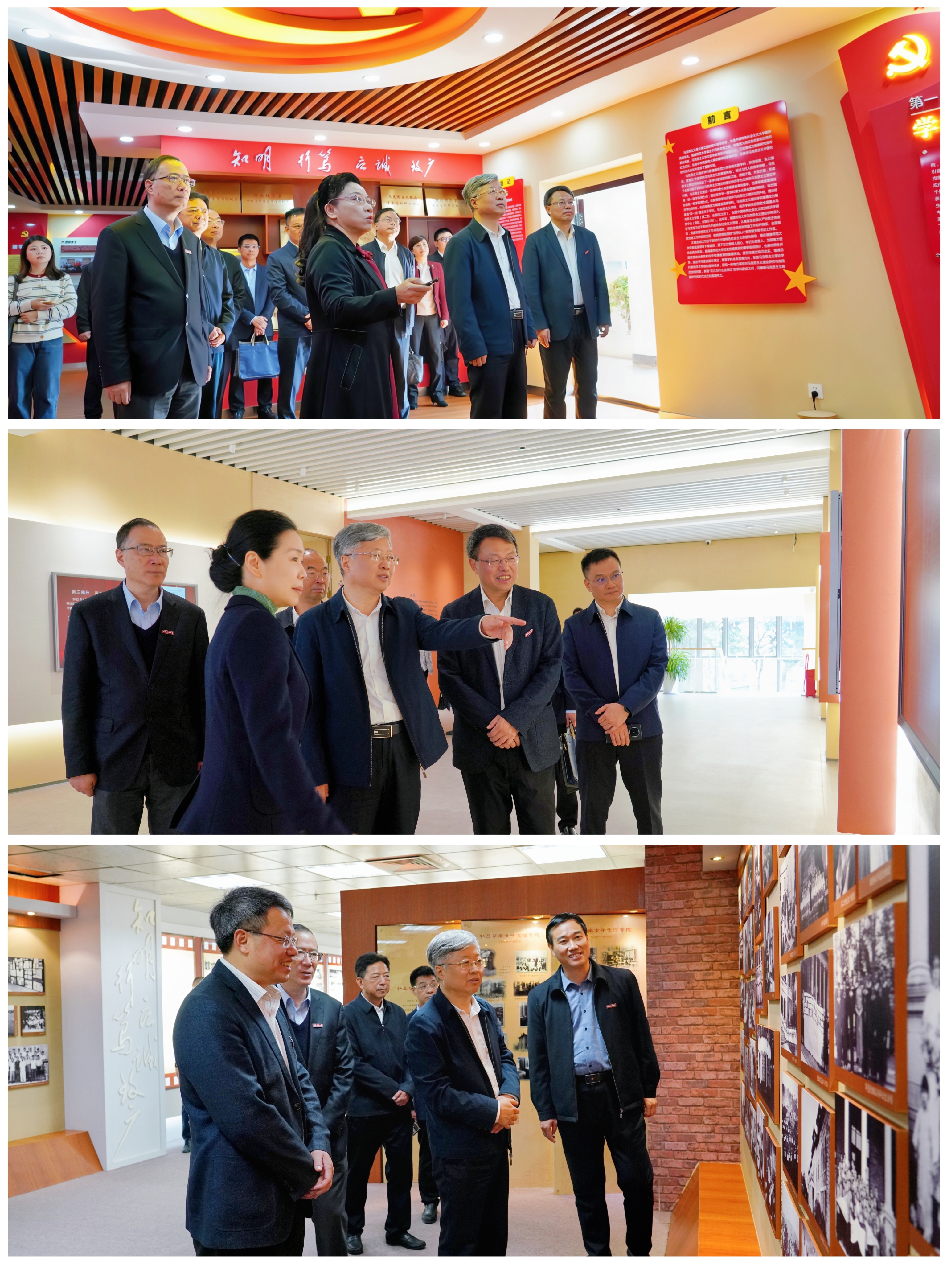 会前,滕佳材一行实地走访了我校马克思主义理论学科群展览馆、新时代大学生社会大课堂实践中心和老照片馆,听取了学校相关学科建设和工作汇报,详细了解学校办学历史和办学成果。