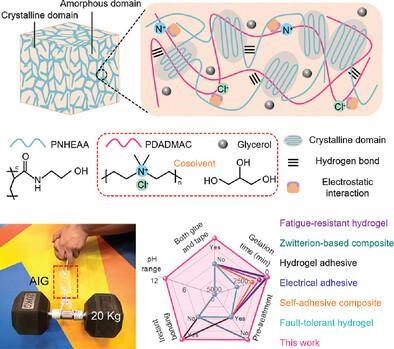 近日,我校海峡柔性电子(未来科技)学院黄维院士、杨震教授和新加坡国立大学Ghim Wei Ho教授制备了一种具有快速凝胶化、超高粘附力和优异机械韧性的新型粘合剂离子凝胶(AIG)为柔性可拉伸无线电子设备的发展带来了新的可能性。同时,设计了一种无电池和无线的AIG贴片,用于实时监测脊椎的位置,实现身体姿势的评估,帮助调节生理活动。相关成果以“Rapidly Gelling, Highly Adhesive, and Mechanically Robust Ionogels for Stretchable and Wireless Electronics”为题发表在Advanced Functional Materials上。