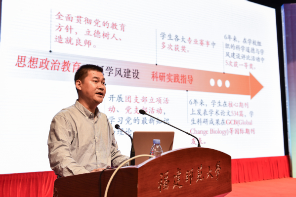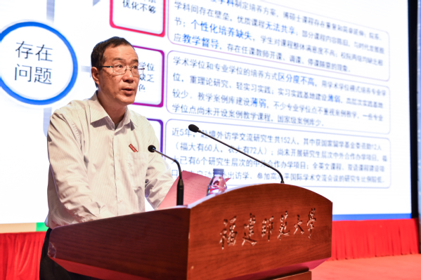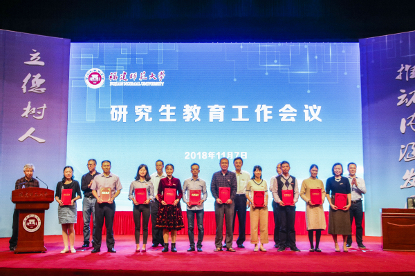 副校长郑家建宣读了获批学位授权点和表彰名单;李宝银、王长平、黄清波、郑家建、涂荣分别对新增学位授权点进行授牌、对近五年研究生工作取得优异成绩的集体和个人进行表彰;地理科学学院、社会历史学院和物理与能源学院依次作研究生教育典型经验发言。