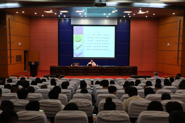 11月8日,我校举行学习贯彻习近平新时代中国特色社会主义思想专题培训班暨校两级中心组(扩大)学习会,邀请省民族与宗教事务厅民族与宗教研究所副所长杨文法博士作题为《深刻理解新时代宗教工作的丰富内涵》的专题辅导报告。校领导,全校处科级干部,各民主党派、统战团体、无党派人士联谊会负责人,离休党总支、关工委、退休协会、老年大学负责人,校本部全体辅导员参加了报告会。会议由校党委副书记潘玉腾主持。