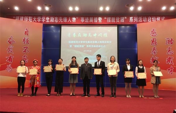 “福建师范大学学生励志先锋人物”事迹展播是“摆脱贫困”系列活动之一。“摆脱贫困”是学校推进家庭经济困难学生综合帮扶的举措,将发展性理念融入学生资助工作中,设立支持创新创业奖励、出国出境访学、攻读硕士研究生、专注实习等发展性资助项目,搭建了感恩教育平台、公益服务平台、能力提升平台、就业创业平台,并将“摆脱贫困”主题思想融入资助工作,提升资助内涵,推动家庭经济困难学生全面发展。接下来,学校还将组织开展学生创新创业培训、素质提升培训班,暑期计划组织更多学生参与开展资助政策乡村行、金融知识校园行、绿色通道万里行等活动,切实帮助广大家庭经济困难学生提升素质、增强能力。
