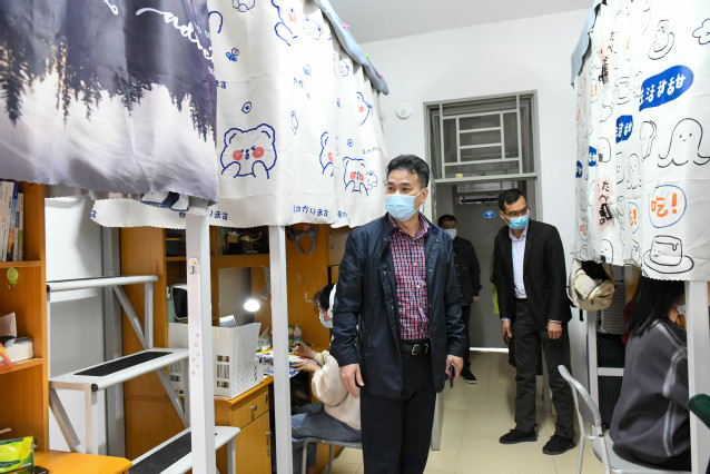 “同学你好,在宿舍上完网课感觉如何呢?”“还需要学院做些什么吗?”“记得经常通风”“大家互相提醒,要减少网购不点外卖。”……3月21日开始,学生事务部全体成员分6组,与各系党政领导、辅导员下沉到一线,每日走访学生宿舍,了解学生学习生活情况、宣传防疫政策。截至目前,全院2752间宿舍实现走访全覆盖。
