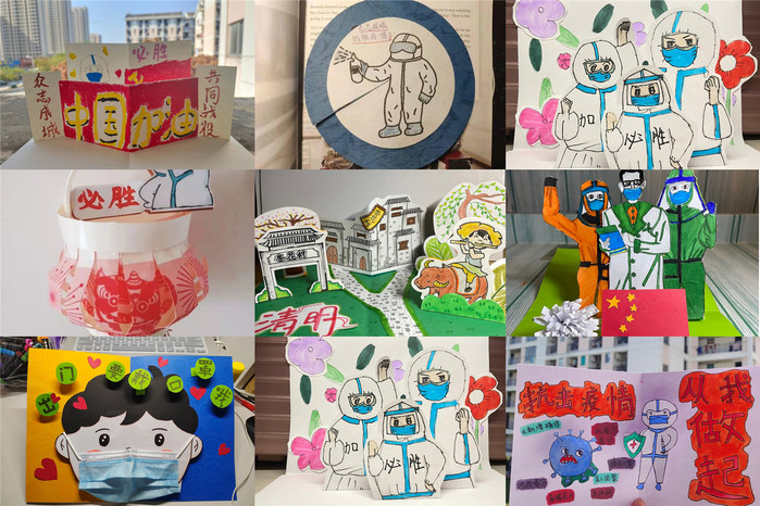 除了“云祭扫”之外,同学们还在线上制作清明、抗疫相关主题的手工立体绘卡。文化产业系2021级产品设计专业黄鹤恬同学带领小组成员们手绘图画,为战疫工作人员送上温暖祝福,向战“疫”烈士致以哀思和敬意。
