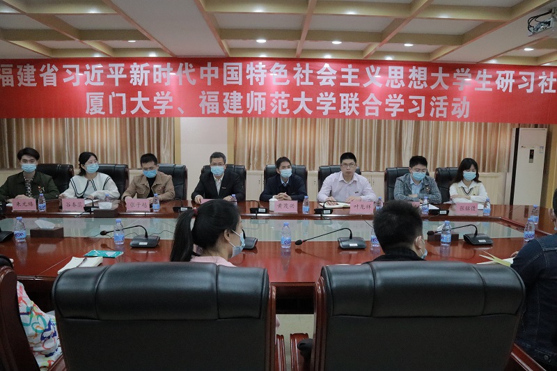 活动以“深学细悟新思想扬蹄奋进新征程”为主题,于4月8日在我校、厦门大学分别设立会场,以线上线下相结合的方式举行。厦门大学党委宣传部部长、社科处处长高和荣,我校党委宣传部部长黄茂兴,以及两校研习社全体成员共150余人参加了本次活动。